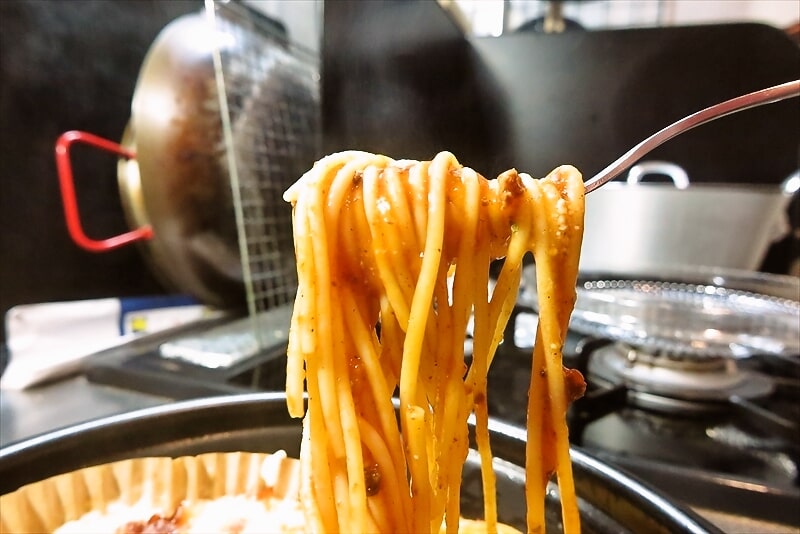 ま、ミートソースと言うほど”肉の旨味”は感じないけれども、ただの具が超少ないナポリタンじゃないだけ、まだマシかな~って。